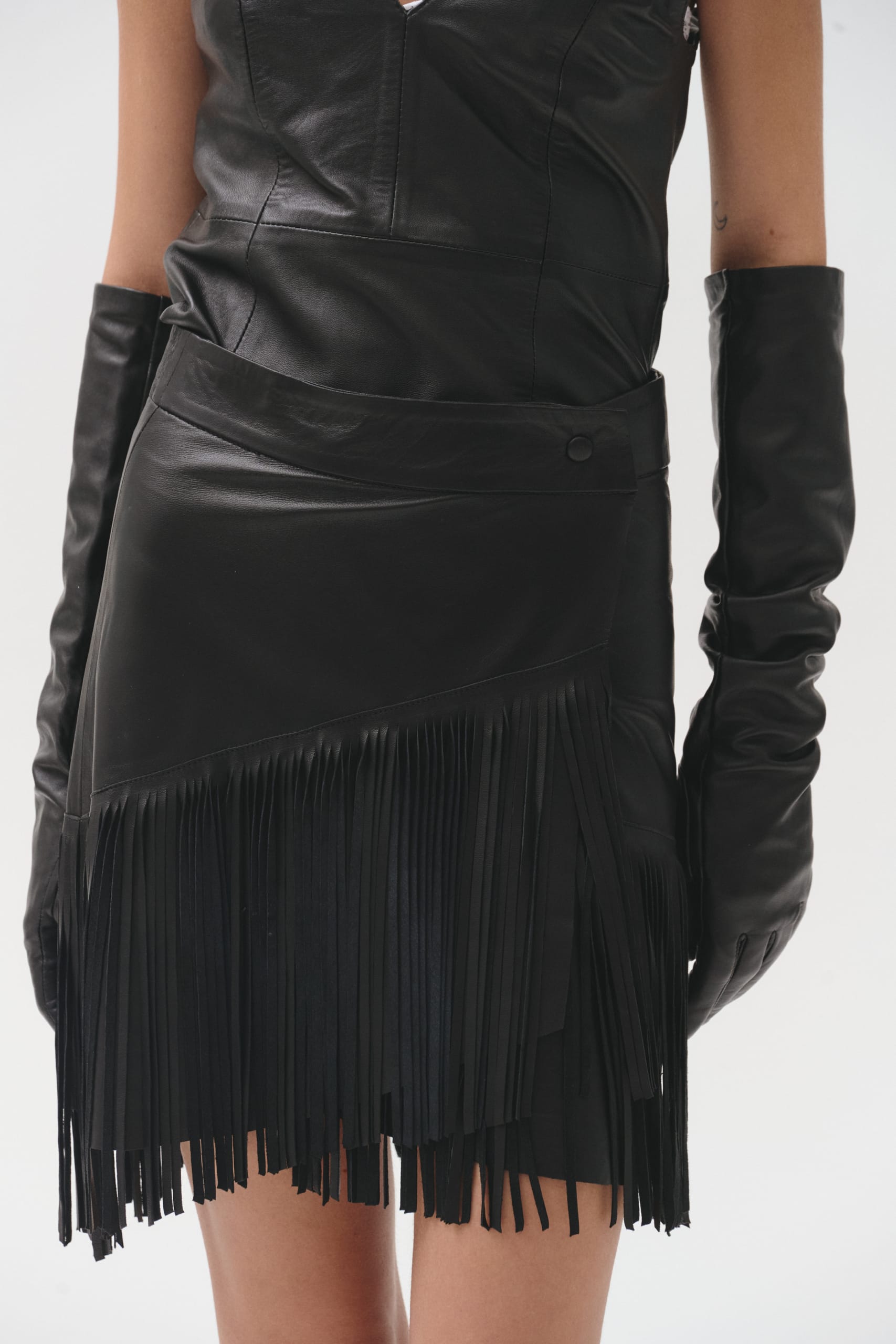 $980,000.00Falda midi confeccionada artesanalmente 100% en gamuza ovina italiana y cuero ovino. Detalle de cuero en cintura y bolsillos. Forrada con seda por dentro hasta la altura de las rodillas. Tajo en el frente. Fit regular. La modelo esta usando talle XS mide 1,80m Inspirada en Celine Dion. Nuestras prendas están realizadas en cuero genuino de alta calidad. Te recomendamos:…